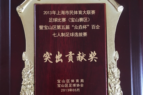 2013年上海市民体育大联赛,足球比赛(宝山赛区)暨宝山区第五届“众壵杯”百企七人制足球选拔赛-突出贡献奖