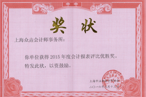 2015年度会计报表优胜奖