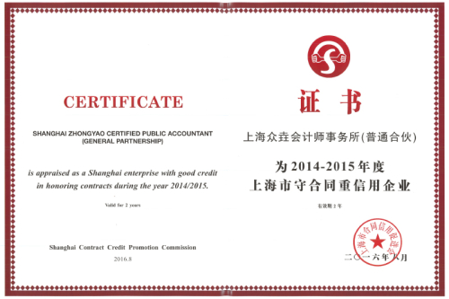 2014-2015年度上海市守合同重信用企业