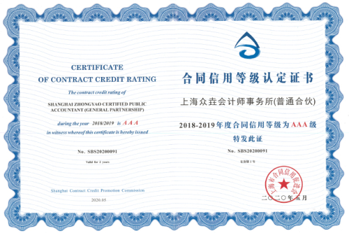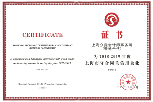 2018-2019年度上海市守合同重信用企业