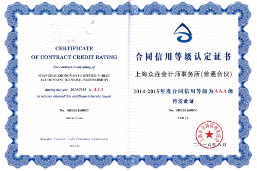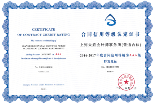 2016-2017年度合同信用等级AAA级