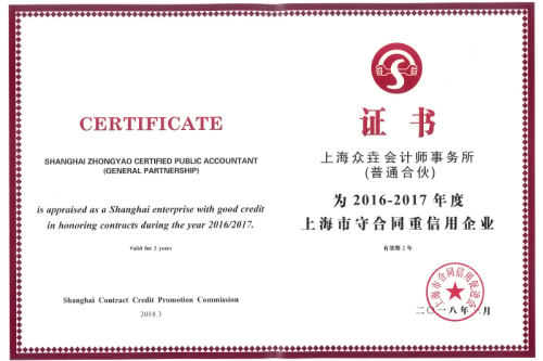 2016-2017年度上海市守合同重信用企业