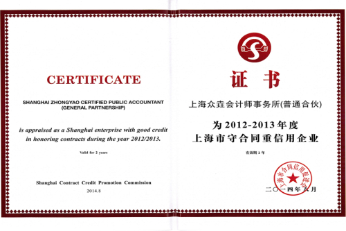 2012-2013上海市守合同重信用企业