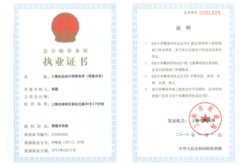 会计师事务所执业证书